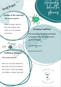 - Written planning ideas that you can implement improving outcomes for the children in the group. This planning includes the context, the planned experiences and the scaffolding strategies for implementation.